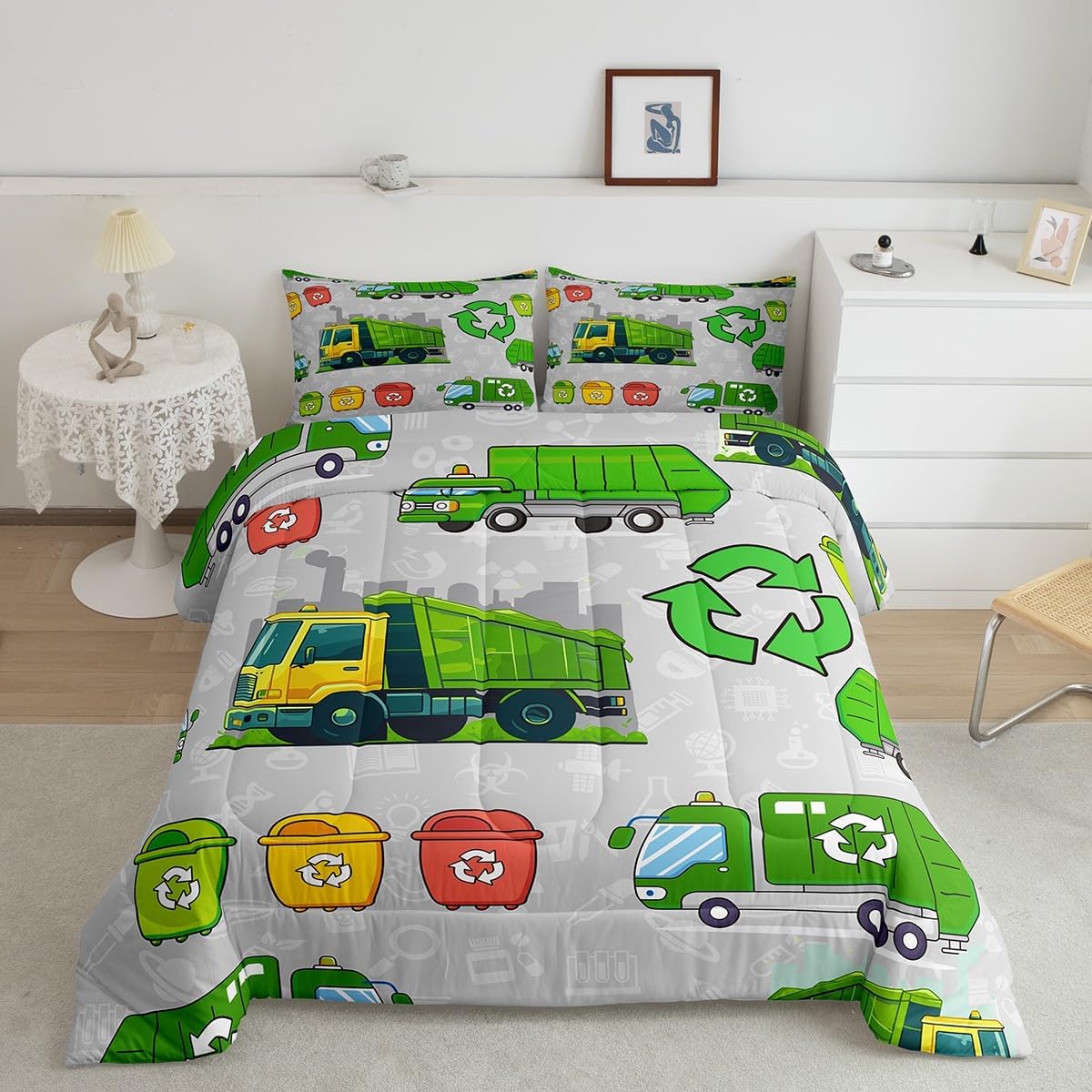 Here is your ultimate garbage truck-themed bedroom with shoppable finds, most of them available on amazon!