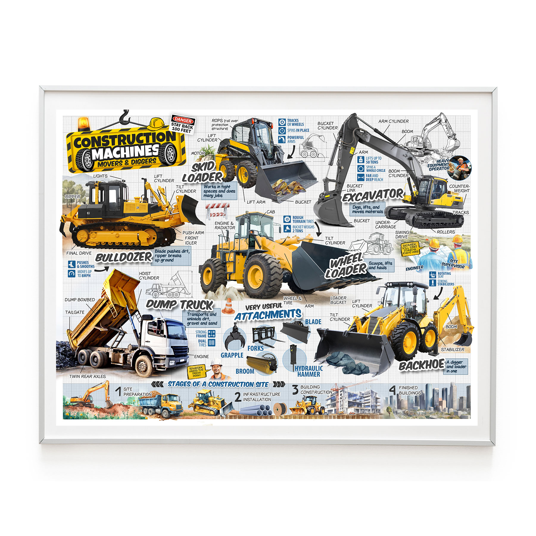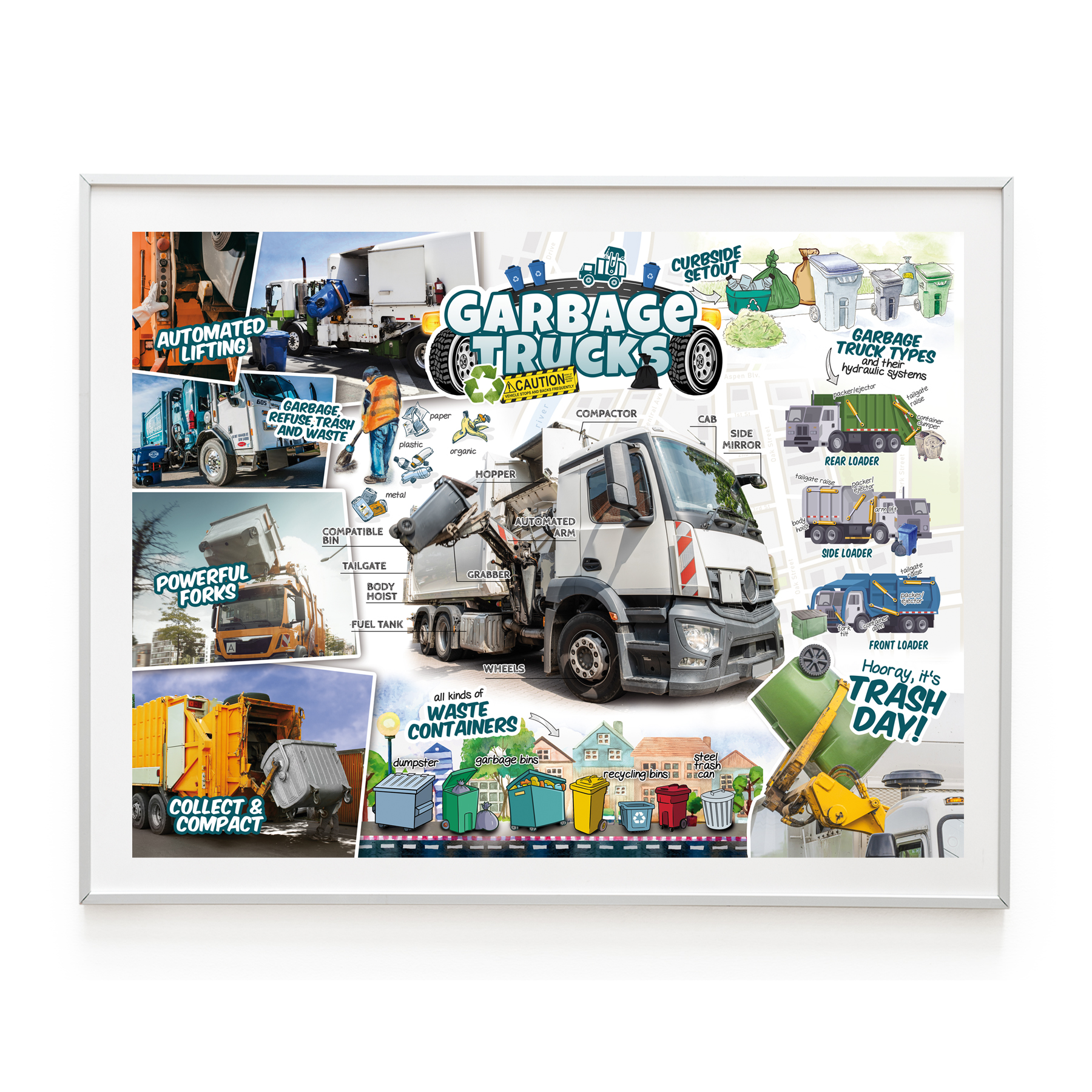 Garbage Truck Poster, Construction Machines Poster, Farming Trucks Poster